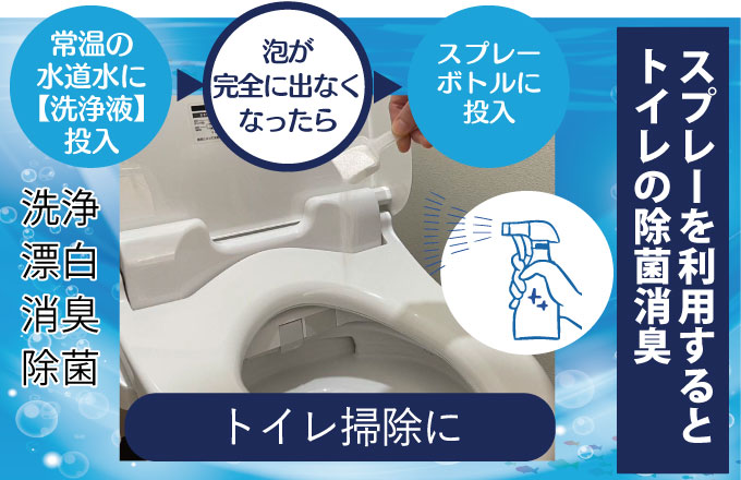 【4】まだまだ使えます。残った洗浄液をトイレや排水溝へ流すとヌメリや汚れを除去できます。