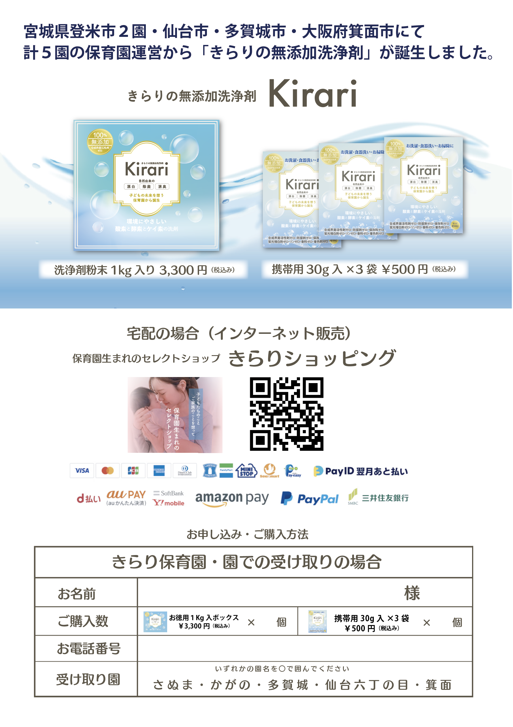 子どもの未来を想う「きらり保育園」から生まれた無添加洗浄剤